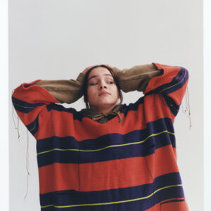 Jumper and skirt by Holzweiler, shoes by Simone Rocha, socks by Falke, bag by Kassl Editions